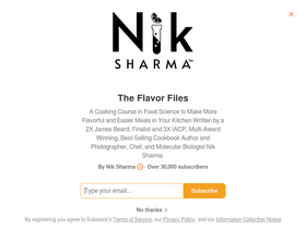 79%approachable food science and delicious recipes for everyone. click to read the flavor files, by nik sharma, a substack publication with tens of thousands of readers.