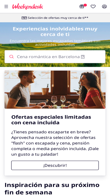 96%Descubre escapadas fin de semana con ofertas exclusivas en toda España. Vive experiencias únicas cerca de ti y ahorra hasta -50% con Weekendesk.