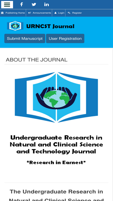 98%the urncst journal: creating a legacy for undergraduate researchers internationally | the urncst journal is a leading open access, indexed, and international peer-reviewed publication for undergraduate research. the journal publishes abstracts for undergraduate conferences and case competitions and promotes innovative undergraduate research education initiatives.