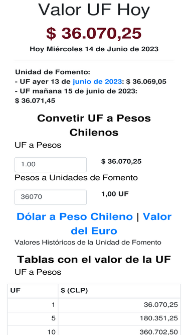 81%Valor UF - Hoy - Oficial y actualizado. Unidad de fomento a pesos. Tablas mensuales, históricos. Convertir UF a Pesos