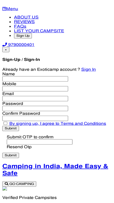 Discover and book verified, family-friendly camping and glamping sites across scenic destinations in India with Exoticamp. Start your adventure today.