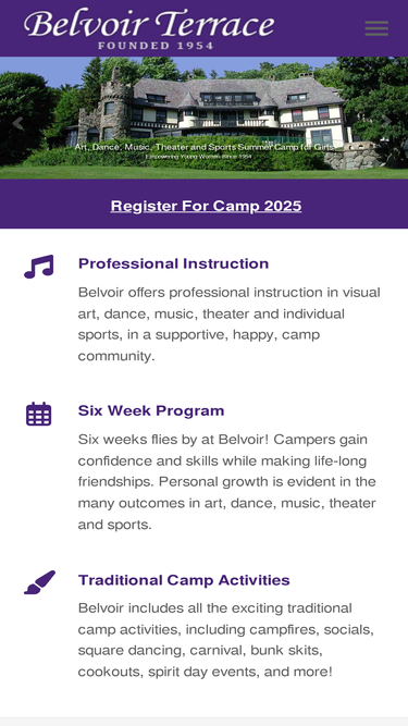 94%Girls Summer Camp at Belvoir Terrace Campers Grades 2-10 All-Elective, Educational Program in Art, Dance, Music, Theater, and Sports.