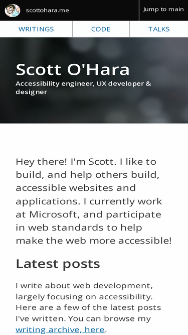 92%scott o'hara is a designer and developer based outside of boston ma. he writes code and cares a ton about building great, accessible user experiences for everyone.