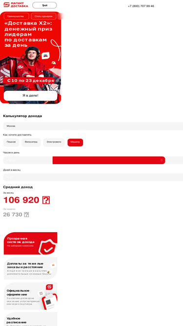 60%На личном авто, самокате, велосипеде или пешком. Легко совмещать с работой и учёбой. Доход до 10 000 ₽/день. Удобное расписание.