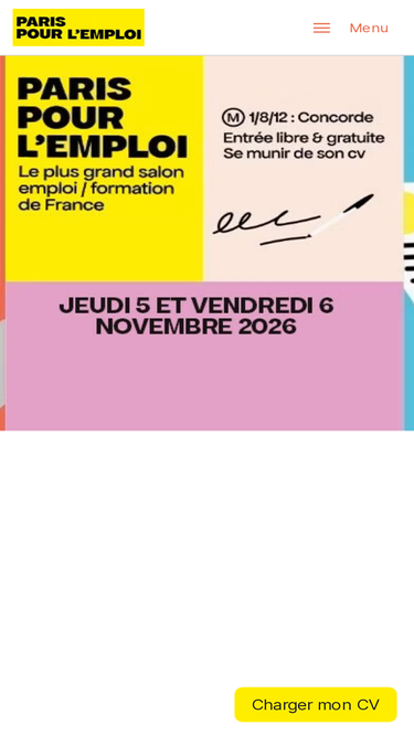 98%Participez au Salon Paris pour l’Emploi des Jeunes 2026, le principal rendez-vous recrutement à Paris pour trouver un premier emploi, un stage ou une alternance.