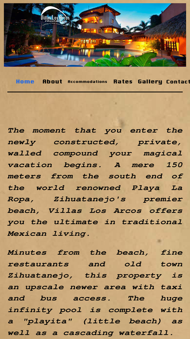 98%this luxurious multilevel house with a pool is located in the coconut grove at la ropa beach in zihuatanejo-ixtapa, mexico just a few steps from the beach, and it features one bedroom suites with a/c and kitchen. rent the entire villa or individual suites.