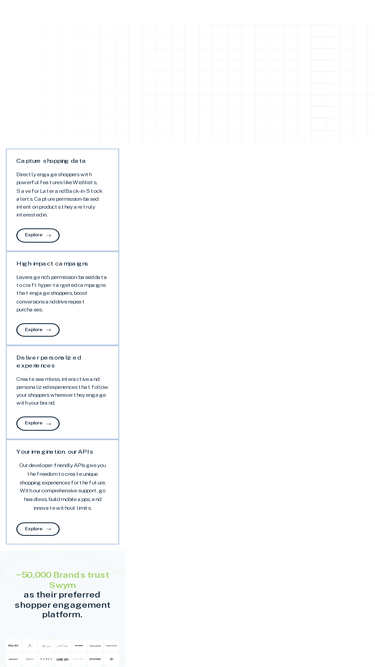73%Discover ready-to-use campaign ideas designed to engage your shoppers, boost conversions, and grow your store—powered by Swym’s shopper-first tools