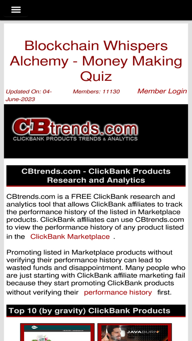 100%Trends and analytics on all ClickBank products. Updated daily. Excellent research tool when you are looking for next profitable ClickBank product to promote