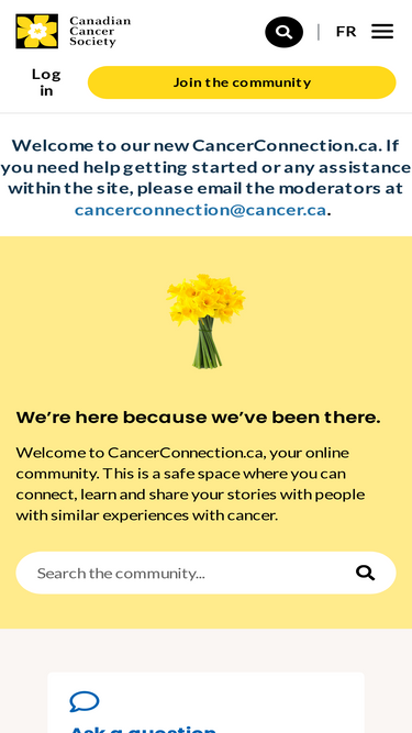 100%Join the Canadian Cancer Society’s trusted online community – CancerConnection.ca – and share your experiences and receive support from our community.