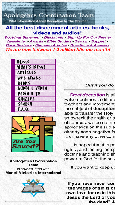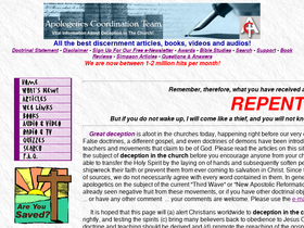 100%teachings and practices on the cults and world religions from a christian perspective. who is jesus to other religions? addressing false teachings inside the church. how to discern truth from error.