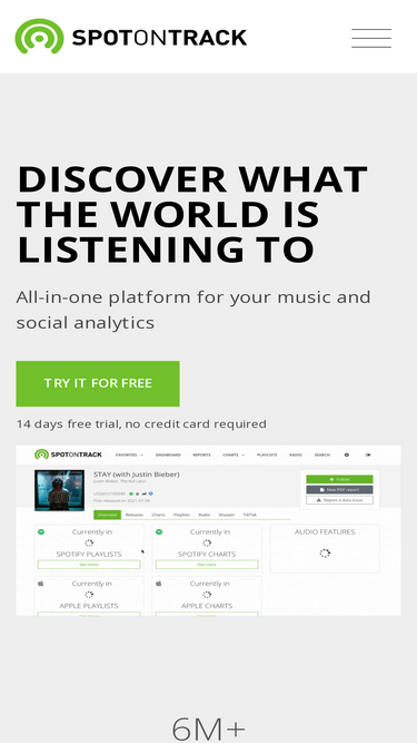 100%Mobile-first Streaming Insights | Real-time Playlist Alerts | Track your Streams, Followers, Playlists & Charts across Spotify, Apple Music, Amazon, Deezer, YouTube, TikTok, Instagram, Shazam, 1001Tracklists, Beatport, Traxsource, SoundCloud, TIDAL & iTunes!
