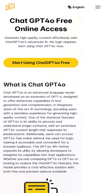 86%experience the power of chat gpt4o with gpt4o free online access. utilize the gpt4o api for seamless integration, benefit from the extended gpt4o context length, and enjoy superior multimodal input processing. start using chat gpt4o free today.