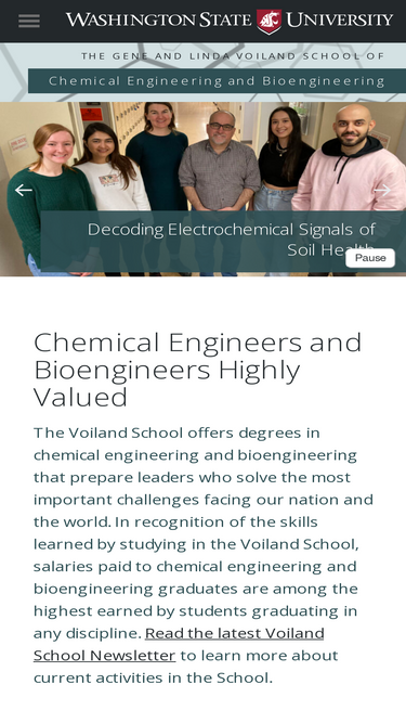 98%Frequently asked questions for the graduate program in the WSU Voiland School of Chemical Engineering and Bioengineering.