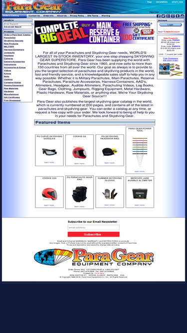 100%an online store providing a wide selection of skydiving equipment and accessories. our online catalog includes parachutes, canopies, altimeters, instruments and all skydiving gear.