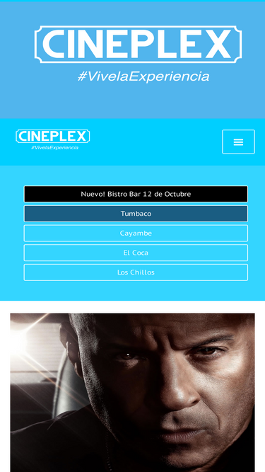 85%cineplex esta ubicado en ventura mall tumbaco para todo el público del valle y sus alrededores. cineplex cayambe: nápoles shopping, panamericana norte km 5. cineplex el coca: chimborazo y quito, c.c. azriel shopping. cineplex los chillos: c.c. river mall, av. luis cordero 377 y gral. enríquez. sangolquí. cineplex bistro bar: av.12 de octubre n24-18 y madrid. diagonal al supermaxi.