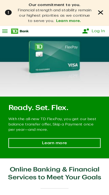 57%welcome to td bank! explore our banking services, credit cards, loans, home lending, and other financial products for you and your business.