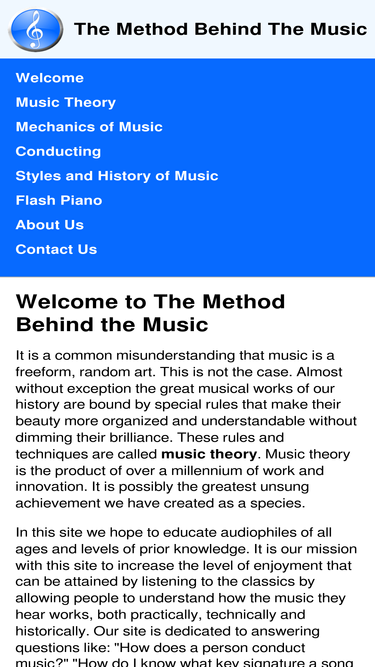 98%The Method Behind the Music is a resource for information on music theory, conducting, the physics of sound, and the history of music.