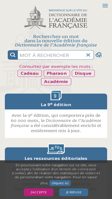 90%Le nouveau portail numérique des 9 éditions du Dictionnaire de l'Académie française