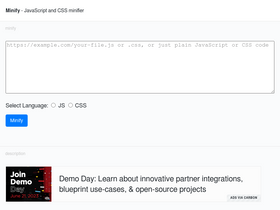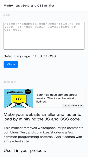 73%Minify JS and CSS online, or include the minifier in your project for on-the-fly compression.