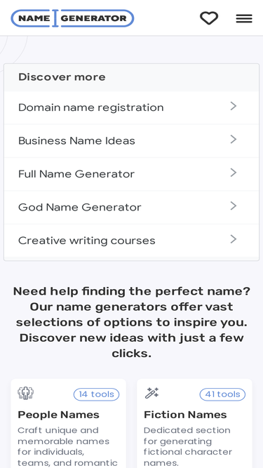 Los otros cinco competidores de la lista de los 10 mejores son mycleverai.com, namegen.com, vondy.com, code.name-generator.co y quizopolis.com.