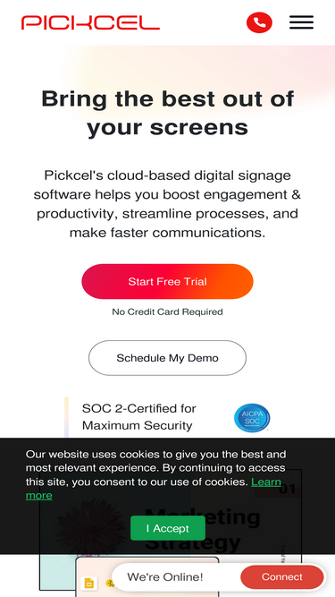 94%Frequently Asked Questions Page to know more about Pickcel Digital Signage Software solutions and features.