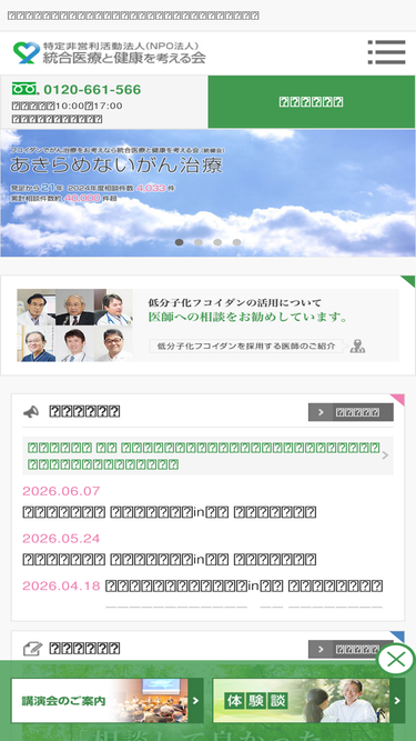 89%統合医療と健康を考える会では、九州大学大学院の白畑實隆教授による低分子化フコイダンの基礎研究報告をはじめ、がん治療に低分子化フコイダンを採用する医師達の症例報告、低分子化フコイダンを飲用している患者様の体験談などの情報を発信しています。
