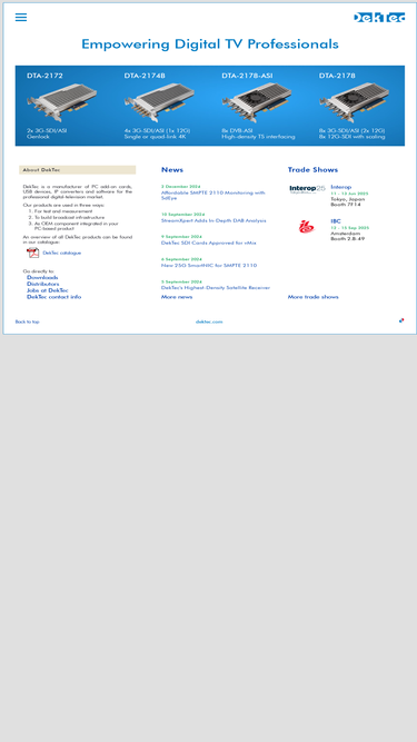 39%dektec offers a large selection of pcie and usb peripherals for creating mission-critical digital-video applications running on standard pcs.