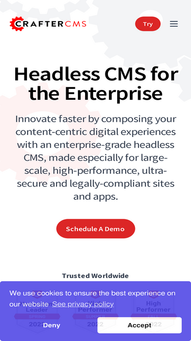 98%craftercms is a java-based headless cms, built in java and git on the back end and supporting react, freemarker, and any other tech on the front end.