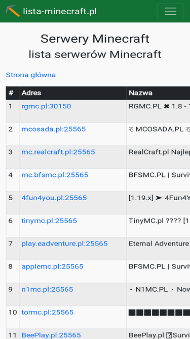 Los otros cinco competidores de la lista de los 10 mejores son minecraft.buzz, roblox.com, lista-minecraft.pl, y .