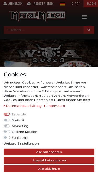 89%T-Shirts, Pullover, Hoodzips und mehr Merchandising-Artikel für Wacken Open Air, Full Metal Cruise und weitere Festivals findet ihr exklusiv auf Metalmerch.com – Einfach und sicher im Onlineshop bestellen.