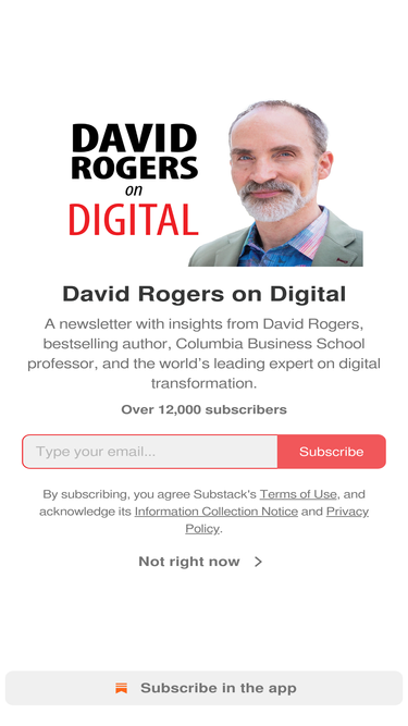 87%A newsletter with insights from David Rogers, bestselling author, Columbia Business School professor, and the world’s leading expert on digital transformation. Click to read David Rogers on Digital, a Substack publication with tens of thousands of subscribers.