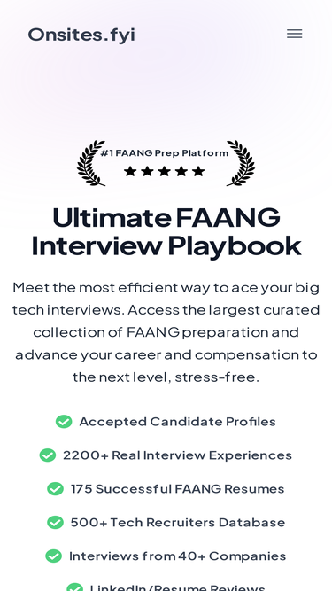72%Access 2200+ verified software engineering interview experiences from FAANG companies. Get real insights into technical interviews at Apple, Google, Meta, Microsoft, and Amazon.