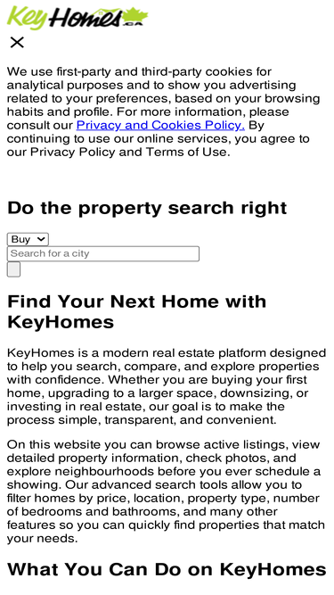 74%KeyHomes: Your digital gateway to Canadian real estate. Discover an array of properties with our extensive listings, fine-tune your search with advanced features, and get valuable insights. Find your perfect home, the Canadian way.