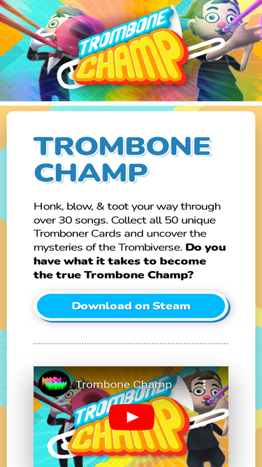 98%the official website for trombone champ, the world's first trombone-based rhythm music game.