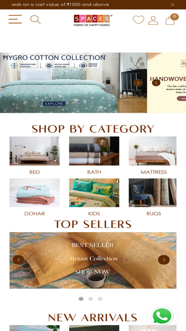 100%Buy stylish bed linen, bath accessories, rugs & mattresses at SPACES. Enjoy 60% off on bed sheets, Towels, carpets, cushions & pillow covers.