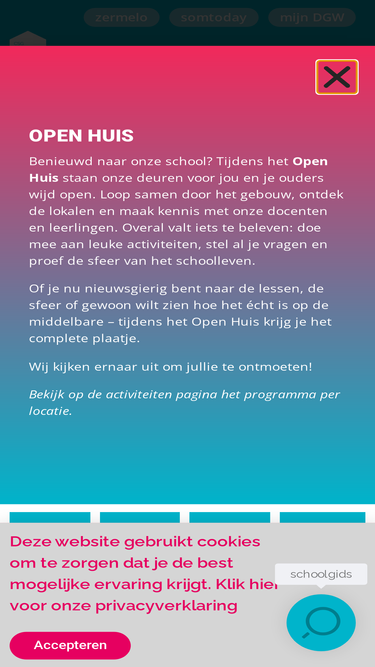 90%Benieuwd naar onze school? Tijdens de Open Dag staan onze deuren voor jou en je ouders wijd open. Loop samen door het gebouw, ontdek de lokalen en maak kennis met onze docenten en leerlingen. Overal valt iets te beleven: doe mee aan leuke activiteiten, stel al je vragen en proef de sfeer van het schoolleven. […]