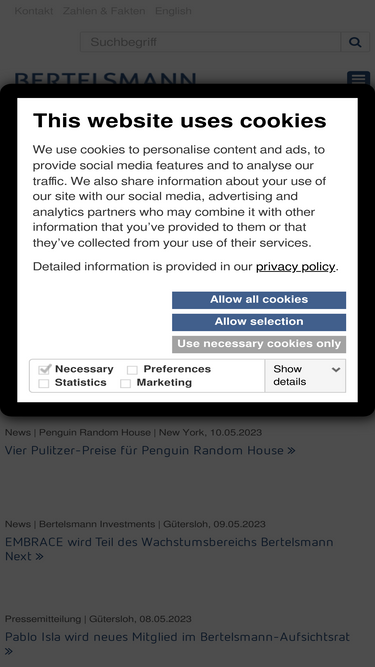 87%Homepage of the Bertelsmann Website