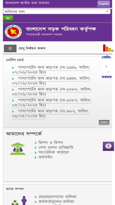 64%সাইট ম্যাপ বাংলাদেশ সড়ক পরিবহন কর্তৃপক্ষহোমবিআরটিএ সম্পর্কিতমিশন ও ভিশনবিআরটিএ সম্পর্কিতবার্ষিক প্রতিবেদনসাংগঠনিক কাঠামোকর্মকর্তার তালিকাফোকাল পয়েন্ট (সকল )সিটিজেন চার্টারফটো গ্যালারিভিডিও গ্যালারিআইন ও বিধিমালাআইন, বিধি ও নীতিমালাসেবাসমূহমোটরযান নিবন্ধন সংক্রান্তমোটরযান নিবন্ধনমালিকানা বদলীইঞ্জিন