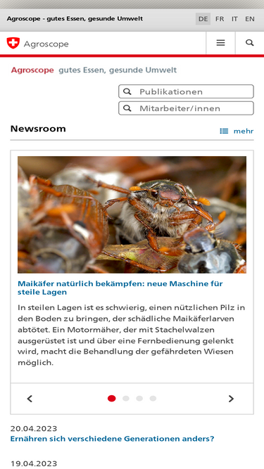 Our free newsletters keep you in the loop with periodic updates on Agroscope news, press releases, blog posts, research results, publications, events, colloquiums and courses.