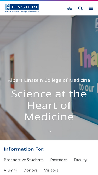 Albert EinsteinCollege of Medicine Where Innovation Meets Compassion We achieve scientific excellence with innovative medical education and research that promotes community engagement and advances access to healthcare in the Bronx and beyond.