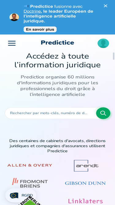 97%Recherchez et analysez des millions de décisions de justice en 1 seconde. Estimez le taux de succès d’une action contentieuse et chiffrez le risque financier. Predictice est le seul moteur de recherche du marché qui vous permet de trier les résultats en fonction de leur sens.