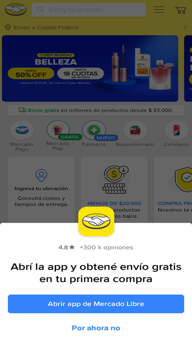 86%El próximo Cyber Monday está llegando a Mercado Libre. Encontrá las mejores promociones en tecnología, moda y deportes.