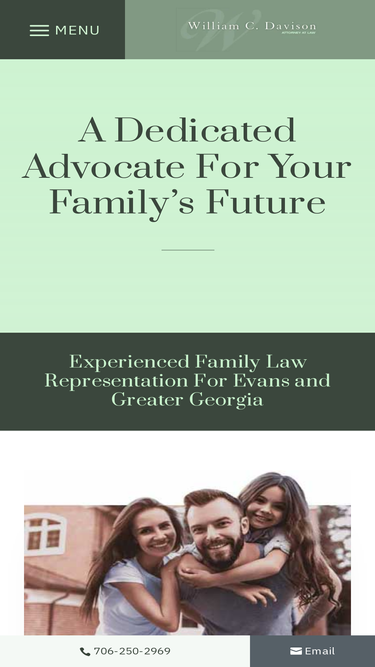100%Family Law issues in Augusta deserve attentive, strong representation. At William C. Davison, Attorney at Law, that's what you can expect. Call today at 706-250-2969.