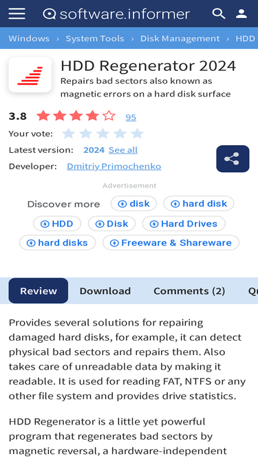 92%HDD Regenerator é um único programa projetado para a regeneração de fisicamente danificado unidades de disco rígido.