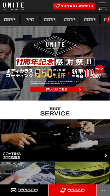 95%ユナイト株式会社の「よくある質問」。ユナイトではボディ、ガラスコーティングから車内の修理までを行っております。コーティングをもっと身近なものに!そんな想いから我々は立ち上がりました。美しく綺麗なカーライフをキーワードに新しい時代を創っていきたいと思います。
