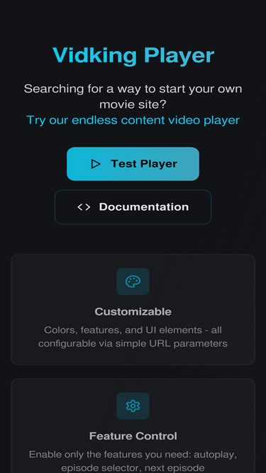 83%Customizable embeddable video player with full control over colors, features, and functionality. Perfect for developers building streaming websites.