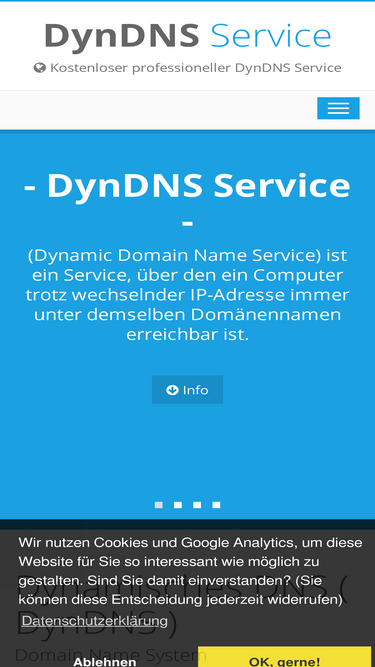 92%DynDNS Service (Dynamic Domain Name Service) ist ein Service, über den ein Computer trotz wechselnder IP-Adresse immer unter demselben Domänennamen erreichbar ist.