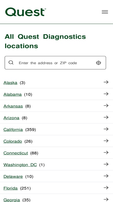 85%Find a Quest Diagnostics location in the United States to complete sample collection for doctor-ordered or self-purchased lab tests.