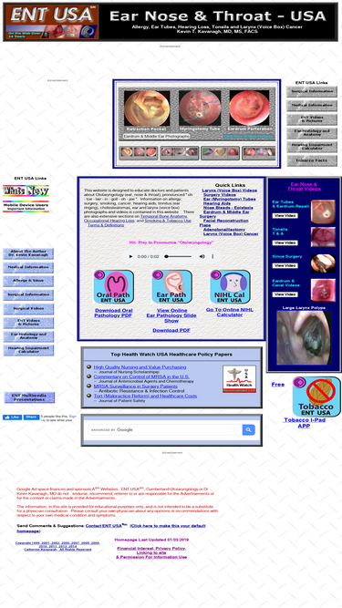ear nose and throat information on allergy, ear tubes, tonsils, colds, smoking, larynx cancer, hearing aids, hearing loss, infections, mastoidectomy, stapes surgery, eardrum repair. ear and voice box photos and surgery videos