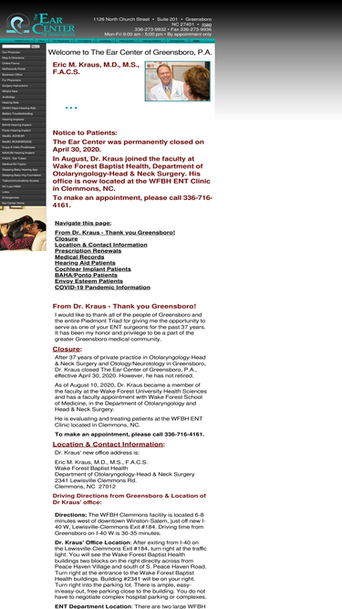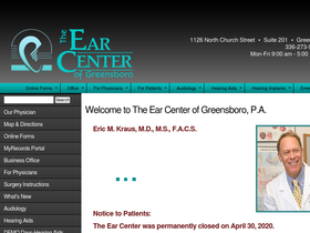 74%the ear center of greensboro, p.a, specializes in pediatric and adult medical and surgical treatment of ear disorders and hearing loss, ear, nose, and throat disorders, ear tubes and tonsillectomy & adenoidectomy, middle ear and mastoid surgery, sinus disease, hearing evaluation & testing, hearing aids and hearing implants for hearing restoration, cochlear implants, baha implants, and advanced implantable hearing device technology, balance/vertigo disorders and testing, hearing aid/hearing implant sales and service.
